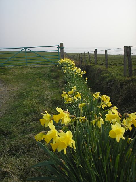 Along the edge of the track are a wonderful parade of Yellow Daffodils that I can see from the window of the Sitting Room. Saturday was a lovely day and hopefully Sunday will be as good, Hope you all had a wonderful weekend. By Sunday we shall have all the floors done in the new part of the house and that will bring a huge CHEER from the 2 of us.