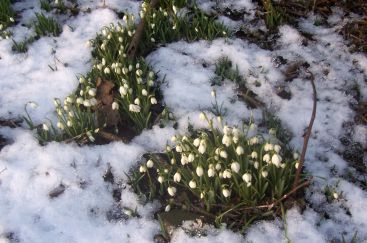 Snow Drops **Drool Drool** (one corner of the garden containing trees, apple trees, Snow Drops, black current bushes and ... bruck.)
