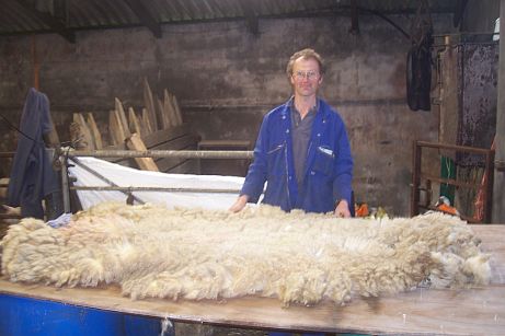 I was shocked: the average fleece was about 8 feet long by 5 feet wide!! (This was a small fleece from a yearling.)