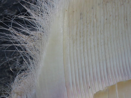 This photo shows the detail of the filters or baleen to be correct. Not having seen it before, but watched the process many times on nature programmes on tv, it is the most amazing thing to actually see in real life. The simplicity of the baleen to allow the water out but to catch the krill and other small creatures in the hair that is on the inside of each of the baleen plates.
