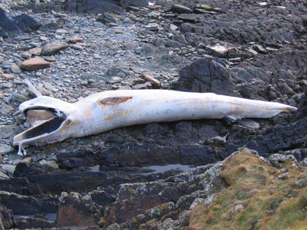 This is the Fin Whale that was found at Ducans Geo, Brims on our island of Hoy, it was an exciting thing to go and see, I know it seems morbid but it is a once in a life time opportunity to see a creature that could have grown into the 2nd largest animal on the planet, this Fin whale was 14.5 meters long but even at that length was a very impressive sight to see, all be it a very sad one.