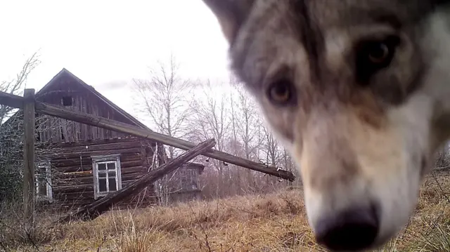 Potpis ispod fotografije, Jedna studija je otkrila da je populacija vukova bila sedam puta veća u zoni isključenja Černobilja nego u drugim obližnjim rezervatima prirode
