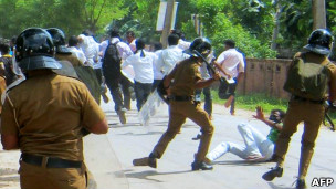 උද්ඝෝෂණයක නිරතව සිටි සරසවි සිසුන් සහ ආරක්ෂක අංශ අතර ඊයේ හටගත් ගැටුම් හේතුවෙන් තුවාල ලැබූ සරසවි සිසුන් හතර දෙනෙක් යාපනය ශික්ෂණ රෝහලට ඇතුළත් කරනු ලැබුහ.