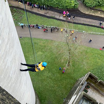 Allison takes on the challenge of abseiling down Arundel Castle for a local charity.