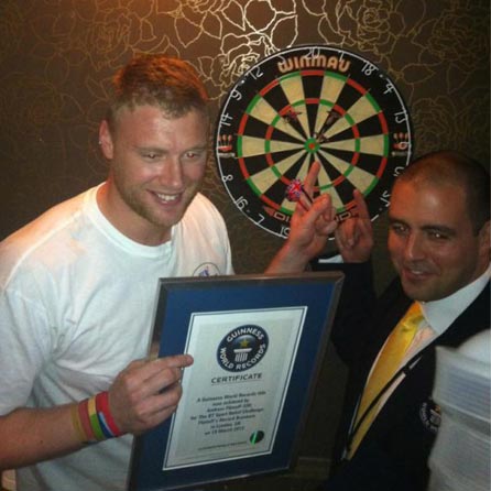 @GWRnews: He's done it, record no. 12! The furthest thrown darts bullseye is 5.05m by Andrew Flintoff for @sportrelief #freddies12 !!!