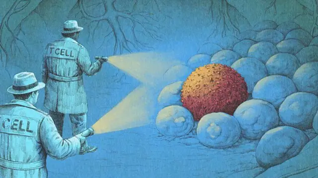 "உடல் அல்லாதது போல் தோன்றும் செல்களைக் கண்டறிந்து அழிக்கும் இயல்பான திறன் உடலுக்கு உண்டு," என்று இம்யூனோதெரபி வளர்ச்சியை ஊக்குவிக்கும் அமெரிக்க இலாப நோக்கற்ற அமைப்பான 'பார்க்கர் இன்ஸ்டிடியூட் ஃபார் கேன்சர் இம்யூனோதெரபி'யின் தலைமை நிர்வாகி கரேன் நுட்சன் விளக்குகிறார். அனைத்தும் சரியாக வேலை செய்தால், அதில் புற்றுநோயாக மாறிய செல்களும் அடங்கும். ஆனால் சில நேரங்களில், புற்றுநோய் செல்கள் அந்த அமைப்பை தவிர்க்கின்றன அல்லது ஏமாற்றுகின்றன, இது ஆபத்தான கட்டுப்பாடற்ற வளர்ச்சிக்கு வழிவகுக்கிறது. அவை தங்களைச் சுற்றியுள்ள ஆரோக்கியமான செல்களிலிருந்து வேறுபடுத்த முடியாதபடி, வெளிப்படையாகவே மறைந்திருக்கின்றன.