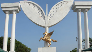 ஆளும் அ இஅதிமுகவின் தேர்தல் சின்னமான இரட்டைஇலையும் அங்கே இப்போது புதிதாக எழுப்பப்பட்டிருக்கிறது.
