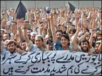 باجوڑ میں مدرسے پر بمباری کے خلاف صوبہ سرحد اور باجوڑ میں احتجاج کا سلسلہ چھٹے روز بھی جاری رہا۔