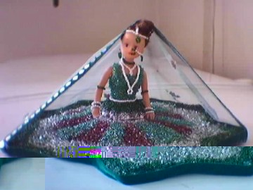 Here's a purse, a mobile pouch, a traditional Asian bride made from crystal chips and a victoria made from crystal chips, and a fairy, too.
