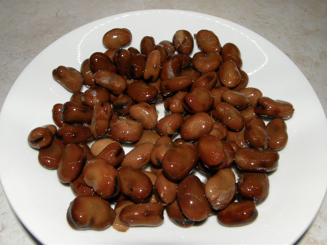 At Christmas we eat so-called Christmas beans (I think its English name is broad bean or field bean) - that are easy to prepare. Soak the beans overnight- they get much bigger. Rinse the soaked beans and put them in a pot of cold water. Bring to boil, add salt and simmer covered for 2-3 hours until beans are tender. Once the beans are ready drain them. You can add salt if it is necessary and enjoy.