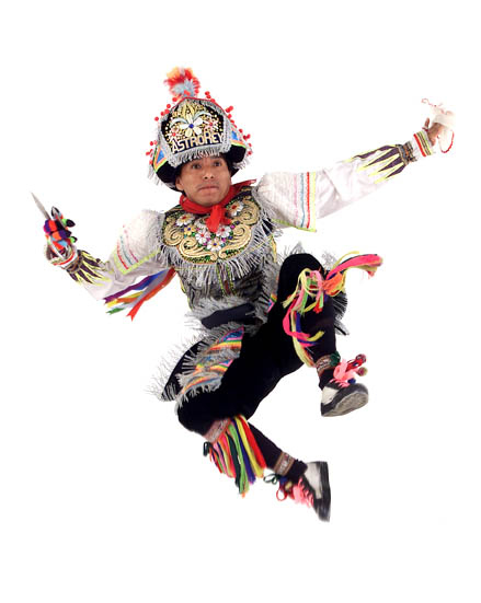 The dancers have a special protector, a kind of minor god, called Apu, which is a special Mountain. The dancers offer his life and his dance to his Apu, then his make a offering, it consists in coca leaves, liqour, korn, potato, wheat, then the dancer make a deal with his Apu. He offering his life and the Apu give him strong and power to dance. Many people thinks which they a kind of Wizards. On december 24 th, they appear, in front of the church, with a colorful costume: A big hat, with little mirrors and colorful strips and two big scissors, it weight about one kilo each one. And they seem being in a trance, migth possesed