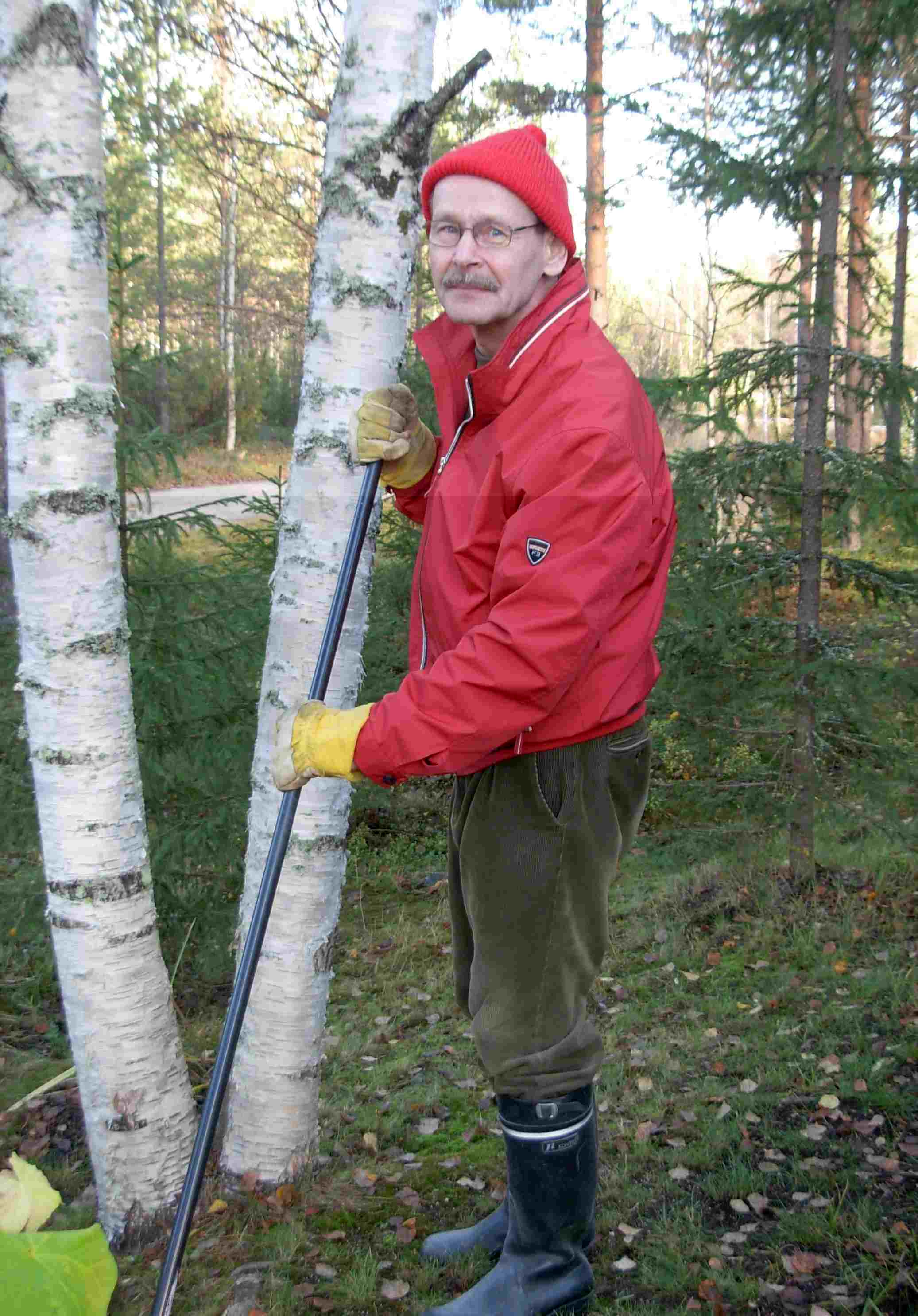 The man in the photo is my husband doing his favourite past time hobby raking.